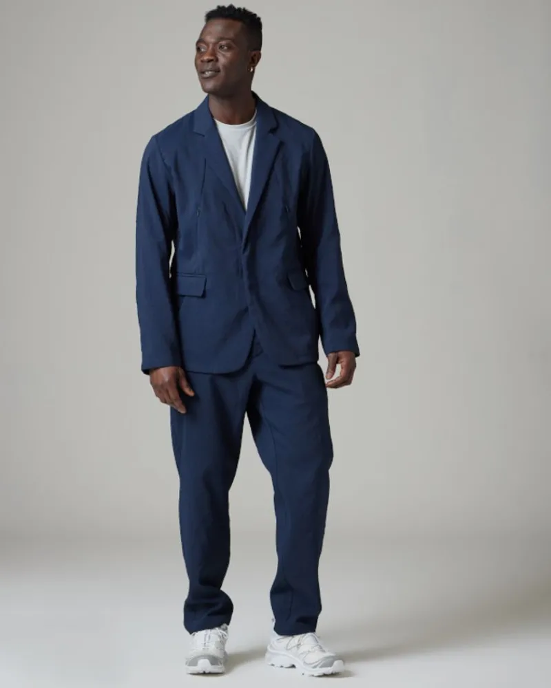 The Air Comfort Cloth Jacket Is A Lightweight Blazer With A Crinkled Texture. The Jacket Is Made Of Recycled Polyester And Aero Capsule®️ Fabric With Hollow Yarn For Maximum Breathability. The Air Comfort Cloth Jacket Features A Notched Collar, Lapels, A Bust Pocket, Dual Side Pockets, And A Split Hem At The Back.