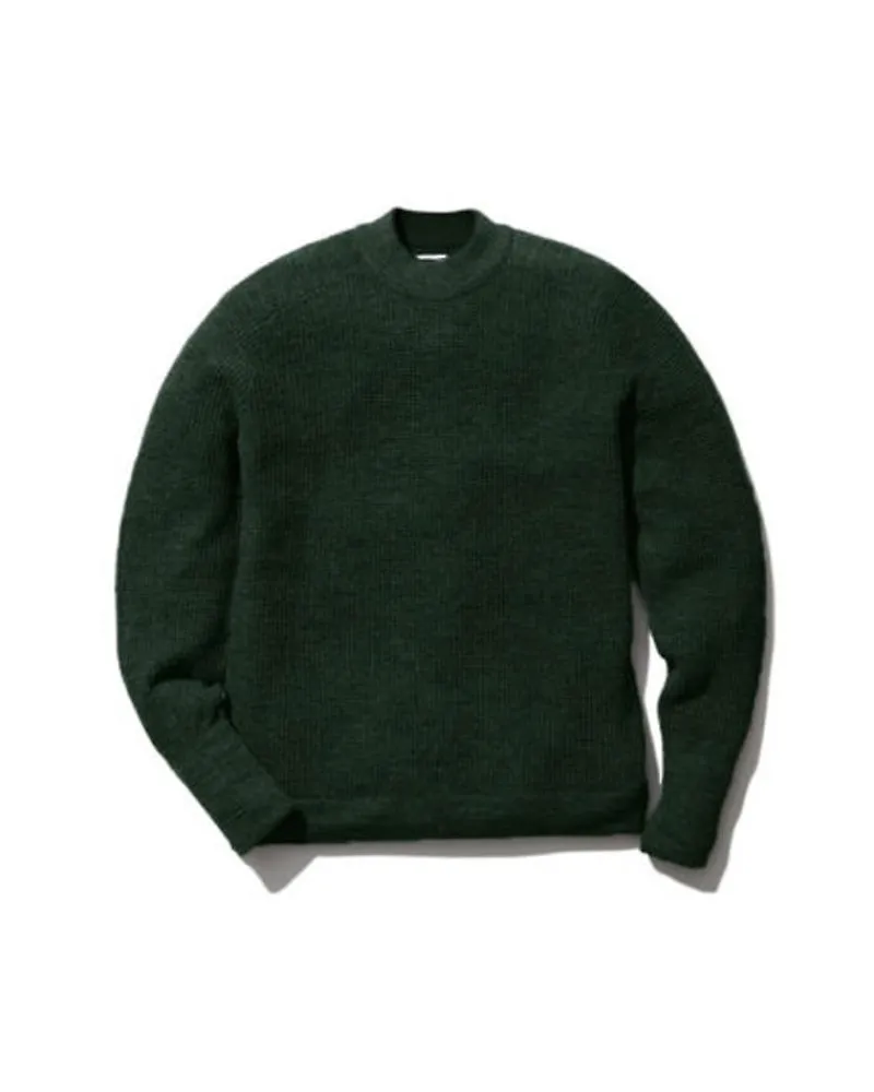 The Inoue Brothers Waffle Mock Neck Sweater Is A Soft, High Heat Retention Sweater. The Sweater Is Made Of 100% Alpaca Yarn. The Inoue Brothers Waffle Mock Neck Sweater Features A Mock Neck Collar, Long Sleeves, Ribbed Cuff, And Ribbed Hem.