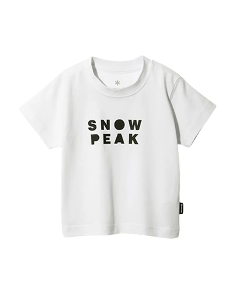 The Kids Snow Peaker Camper T-Shirt Is A Lightweight, Short-Sleeved Top. The Fabric Is Made Of Cotton And Recycled Polyester And Has A Snow Peak Graphic On The Front, And A Camper Graphic On The Back. The Shirt Features A Crew Neck, Short Sleeves, And Printed Chest And Back.