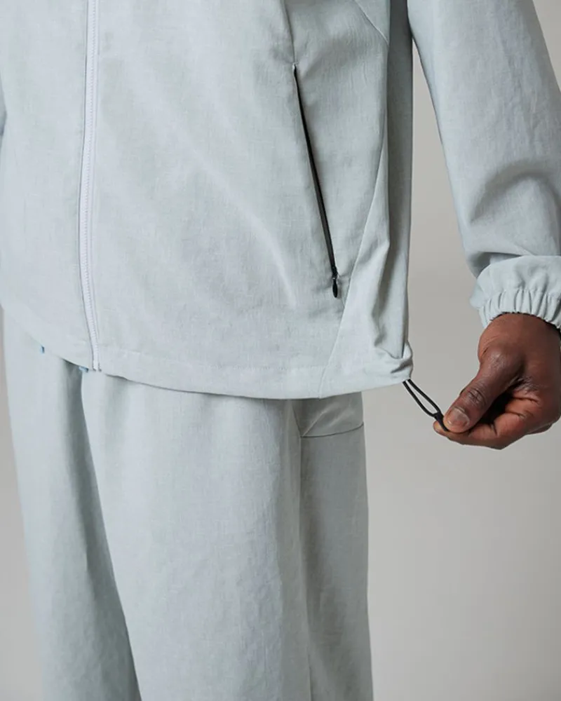 The Polyester Poplin Jacket Is A Quick-Dry Active Jacket Made Of 100% Recycled Polyester. It Is Made Of Breathable Fabric And Has A Wrinkled Finish With A Light Stretch. The Polyester Poplin Jacket Features A Stand Collar, Full Zip, Dual Side Pockets, Elastic Cuffs, And Adjustable Hem.