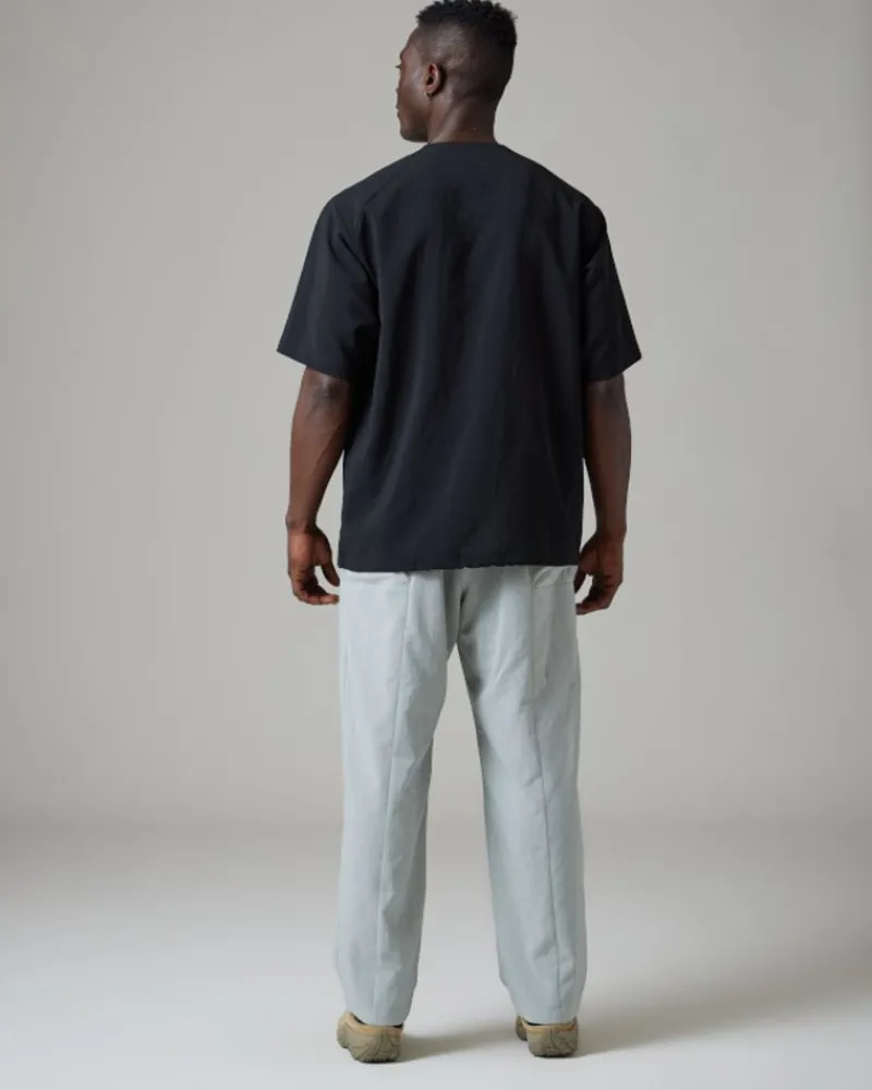 The Polyester Poplin Pullover Is A Lightweight, Quick-Dry, And Breathable Top. The Fabric Has A Stretchy Crepe Texture And Is Made Of Recycled Polyester. The Polyester Poplin Pullover Features A Crew Neck, An Angled Zipper At The Neckline, Short Sleeves, And A Straight Hem.