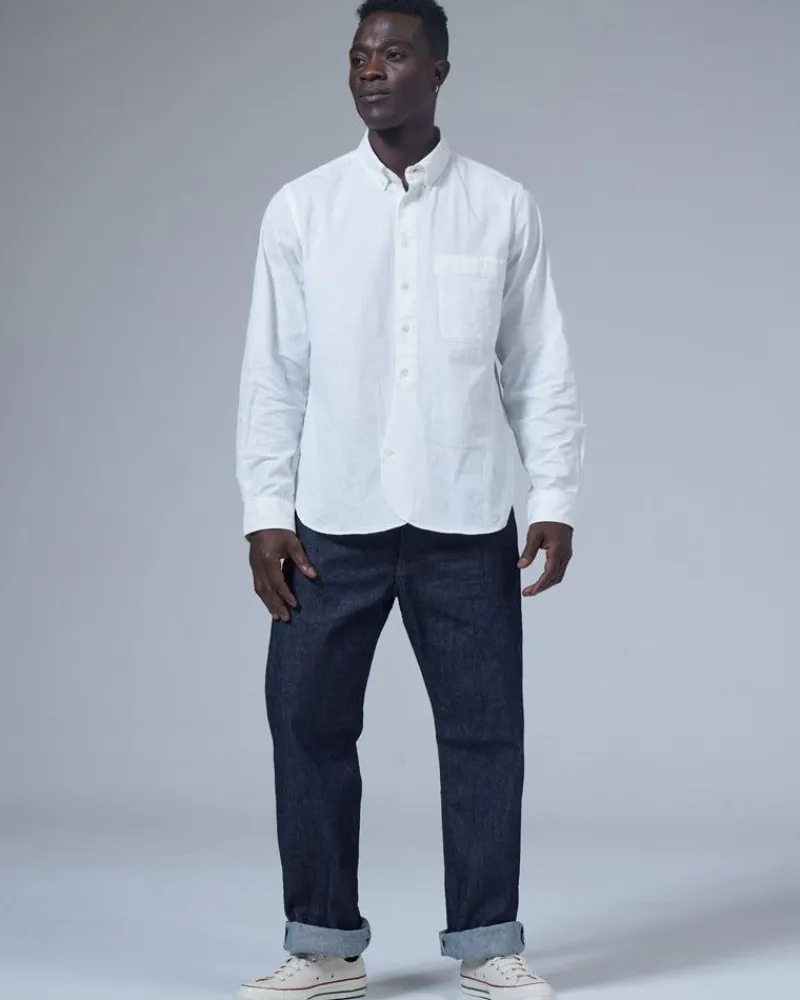 The Recycled Cotton Denim Is A 13.5Oz Selvedge Denim Pant. The Fabric Is 100% Recycled Denim From Guatemala. The Denim Features A Button Closure, Button Fly, Five Pockets, And Straight Leg Opening.
