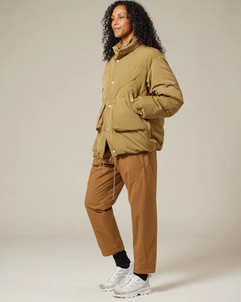The Takibi Down Jacket Is A Fire And Water-Resistant Puffer Jacket. The Jacket Is Made Of 100% Aramid Fabric For Fire And Water Resistance And Recycled Washable Down. The Takibi Down Jacket Features A Stand Collar, Button Closure, Dual Large Side Pockets, Long Sleeves With An Elastic Cuff, And A Drawcord At The Hem.