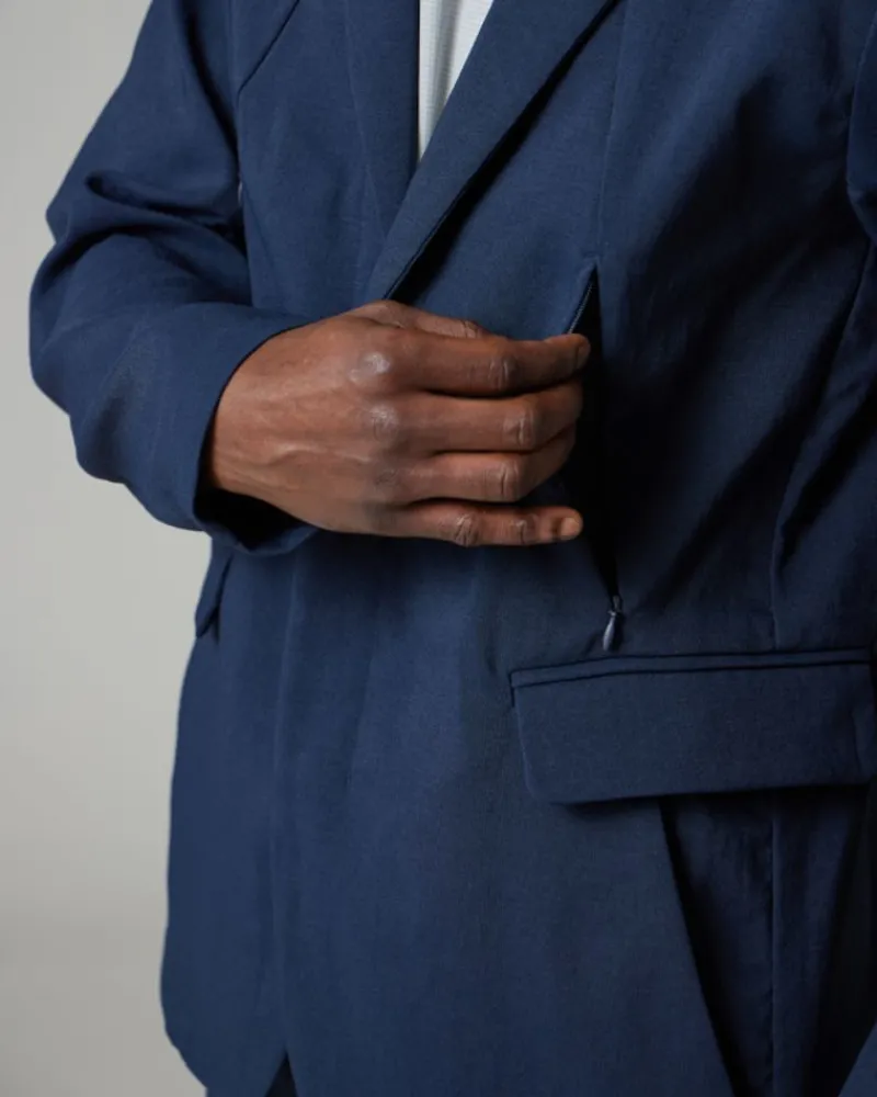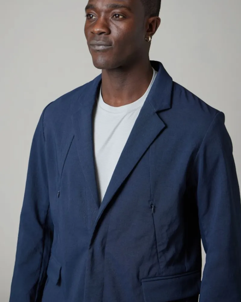 The Air Comfort Cloth Jacket Is A Lightweight Blazer With A Crinkled Texture. The Jacket Is Made Of Recycled Polyester And Aero Capsule®️ Fabric With Hollow Yarn For Maximum Breathability. The Air Comfort Cloth Jacket Features A Notched Collar, Lapels, A Bust Pocket, Dual Side Pockets, And A Split Hem At The Back.