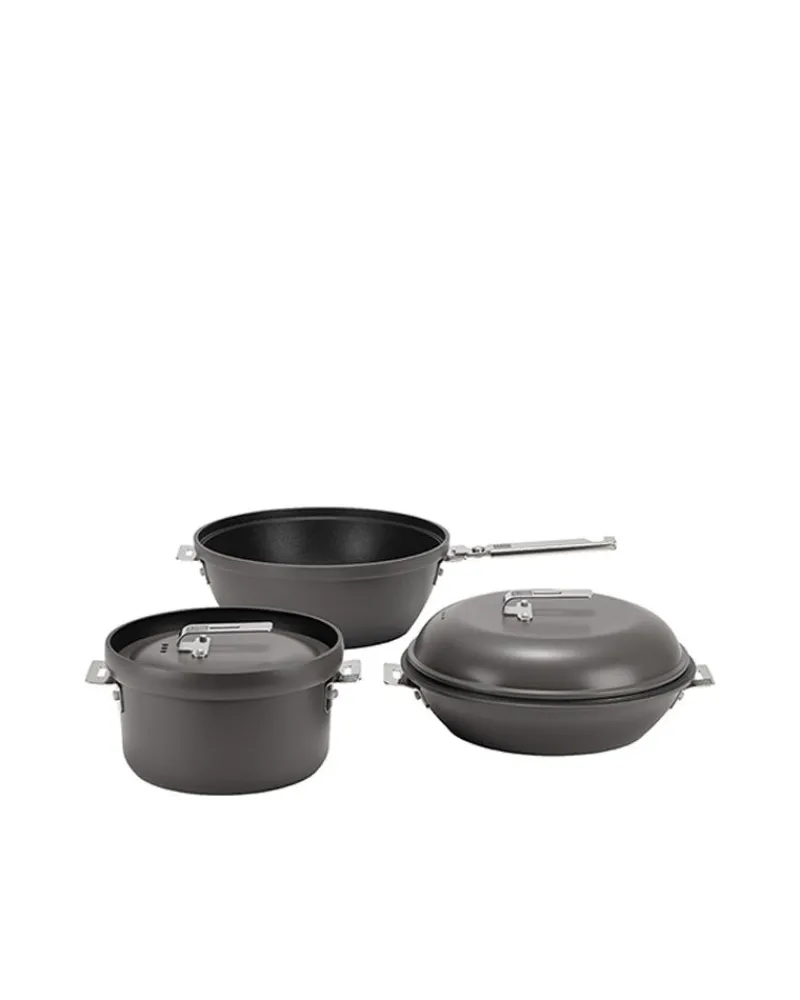 Made Of Non-Stick Aluminum, The Field Cooker Pro Is A Versatile Cooking Option. Use The Field Cooker Pro For Frying, Baking And Stewing. The Set Includes A Large Pot, Rice Cooker And Saute Pan. Designed To Be Modular, The Saute Pan Doubles As A Lid For The Pot. The Field Cooker Pro Set Also Features Foldable Handles For Easy Storage. Pair The Field Cooker Pro With The Home And Camp Burner For A Complete Cooking Set.