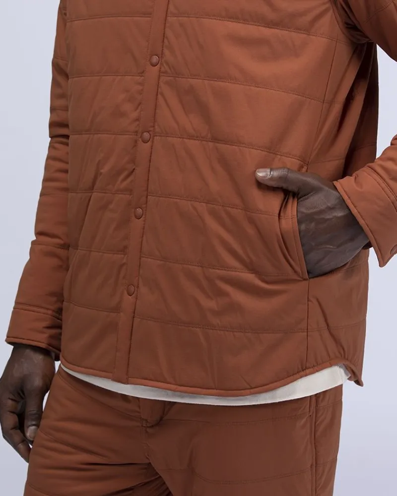 The Flexible Insulated Shirt Is A Lightweight Quilted Jacket. The Shell Material Offers Stretchability, Water Resistance, And Heat Retention Due To Primeflex® Fabric And Bio-Based Nylon. The Lining Is Made Of 100% Recycled Polyester And 40% Recycled Padding Material. The Flexible Insulated Shirt Has A Collar, Full Snap Button Closure, Envelope Pocket With A Hidden Zip Pouch, And Dual Side Pockets. Pair The Flexible Insulated Shirt With The Flexible Insulated Pants For A Matching Set.
