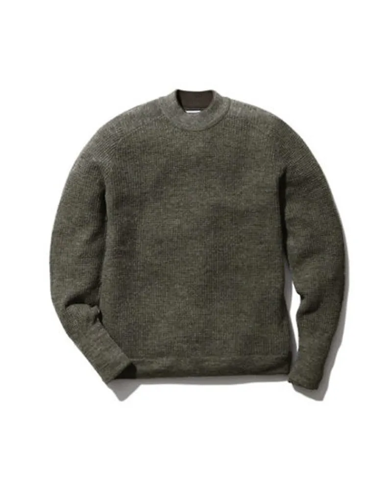 The Inoue Brothers Waffle Mock Neck Sweater Is A Soft, High Heat Retention Sweater. The Sweater Is Made Of 100% Alpaca Yarn. The Inoue Brothers Waffle Mock Neck Sweater Features A Mock Neck Collar, Long Sleeves, Ribbed Cuff, And Ribbed Hem.