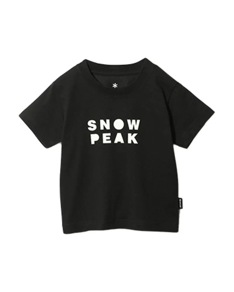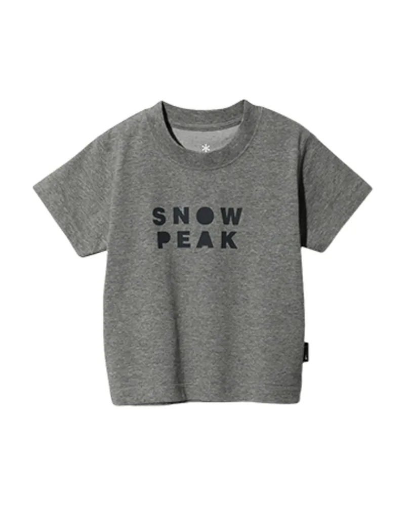 The Kids Snow Peaker Camper T-Shirt Is A Lightweight, Short-Sleeved Top. The Fabric Is Made Of Cotton And Recycled Polyester And Has A Snow Peak Graphic On The Front, And A Camper Graphic On The Back. The Shirt Features A Crew Neck, Short Sleeves, And Printed Chest And Back.