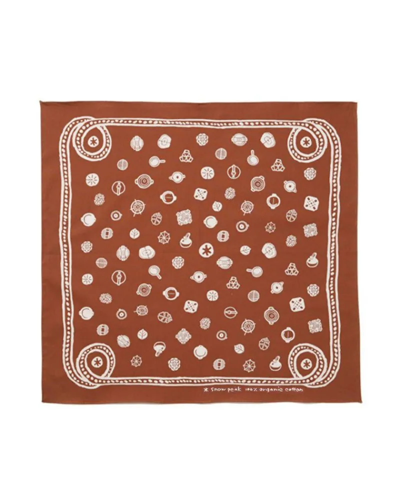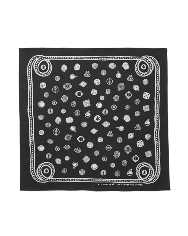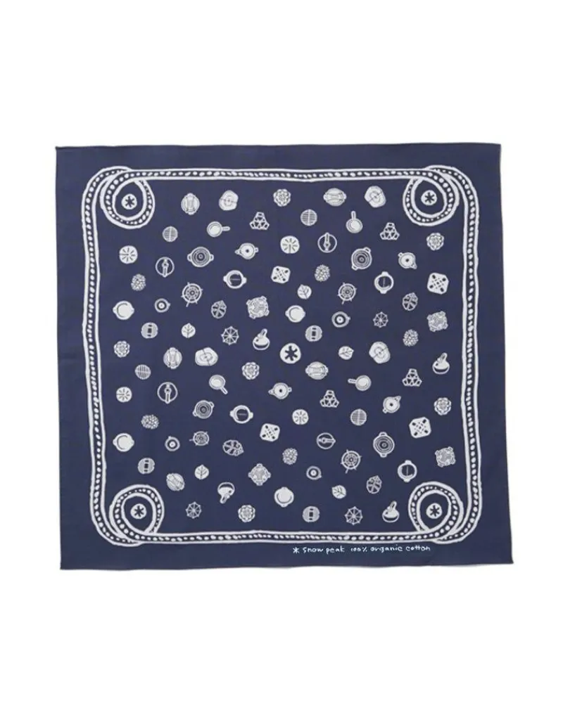 The Organic Cotton Dot Bandana Is Hand-Printed And Made Of 100% Cotton. Each One Features Illustrations Of Snow Peak’S Essential Camping Accessories.