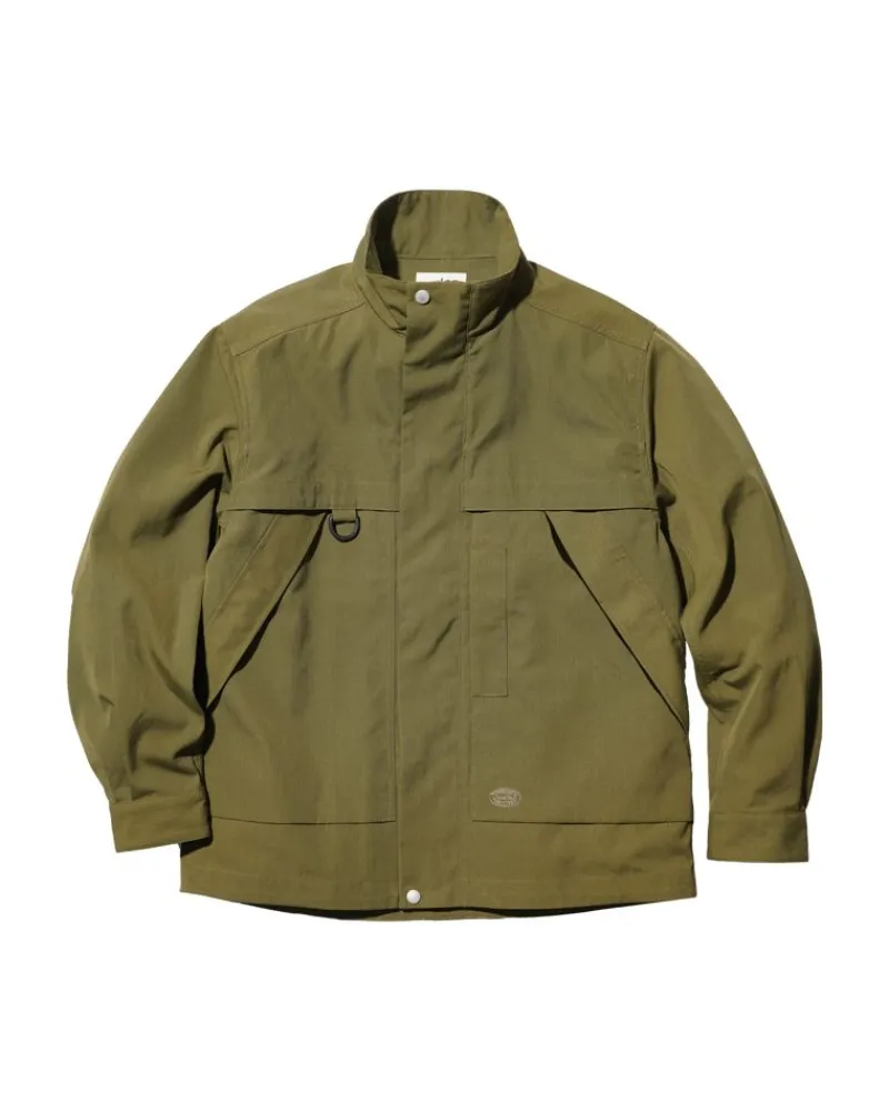 The Takibi Jacket Is A Water-Resistant Canvas Jacket. The Jacket Is Made Of Fire-Resistant Fabric, Aramid, And Organic Cotton. It Features A Stand Collar With A Hidden Hood, Zip And Button Closure, Dual Bust Pockets, Waist Drawcord, And Dual Waist Pockets.