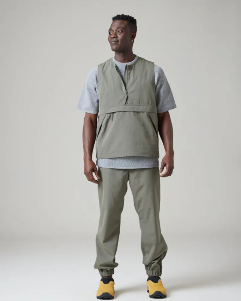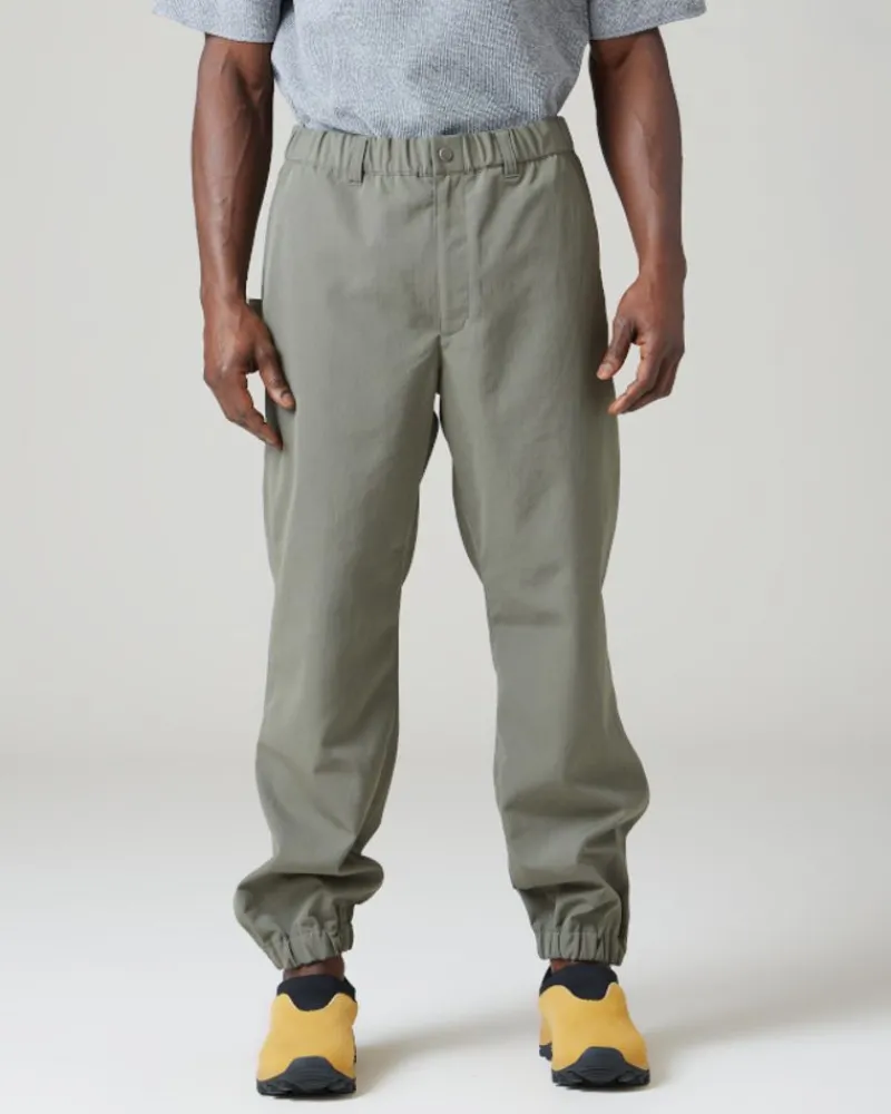 The Takibi Weather Cloth Pants Are Lightweight Joggers. The Pants Are Made Of A Fire-Resistant Aramid Blend. The Takibi Weather Cloth Pants Feature A Buttoned Elastic Waistband With A Drawcord, Dual Side And Back Pockets, Hammer Loop, Straight Leg, And An Elastic Hem.